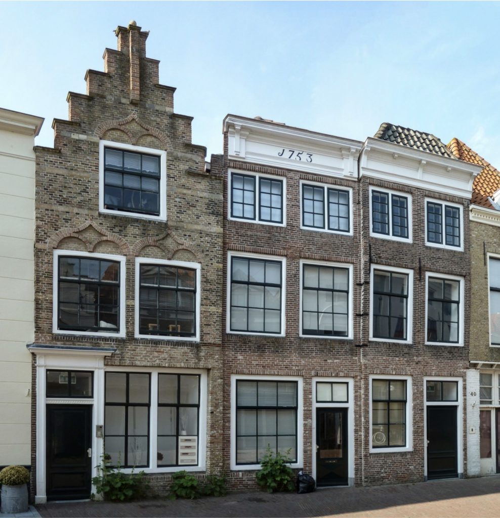 Afbeelding: Vlasmarkt, Middelburg. Na verschillende restauraties van deze panden draagt de trapgevel nu nummer 44. Het pand ernaast met in de lijst 1753 is in de jaren dertig van de 20ste eeuw omgenummerd naar 44, het geboortehuis van Isaac Hermanus Somon in 1816.