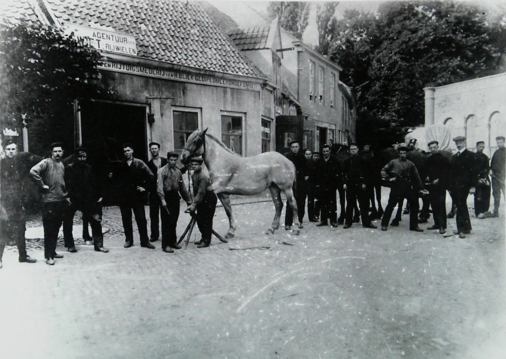 De ‘Grof- en hoefsmederij annex Pakhuis, Woonhuis en Tuin’ aan de Noordpoort werden in maart 1875 geveild. De nieuwe eigenaar Hugo Bliek (1850-1930) adverteerde regelmatig met oude en nieuwe rijtuigen en vanaf de eeuwwende kwamen er ook rijwielen en later ook auto’s in de verkoop en reparatie. Daarvoor zal zoon Cornelis Janis (1883-1952) verantwoordelijk geweest zijn, die de zaak in 1920 overnam.