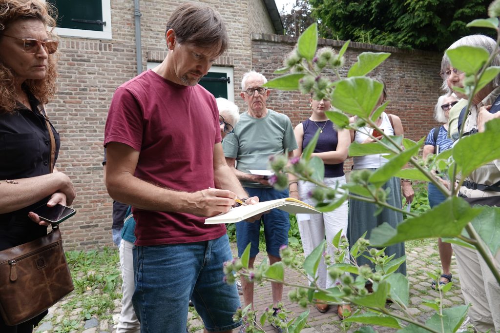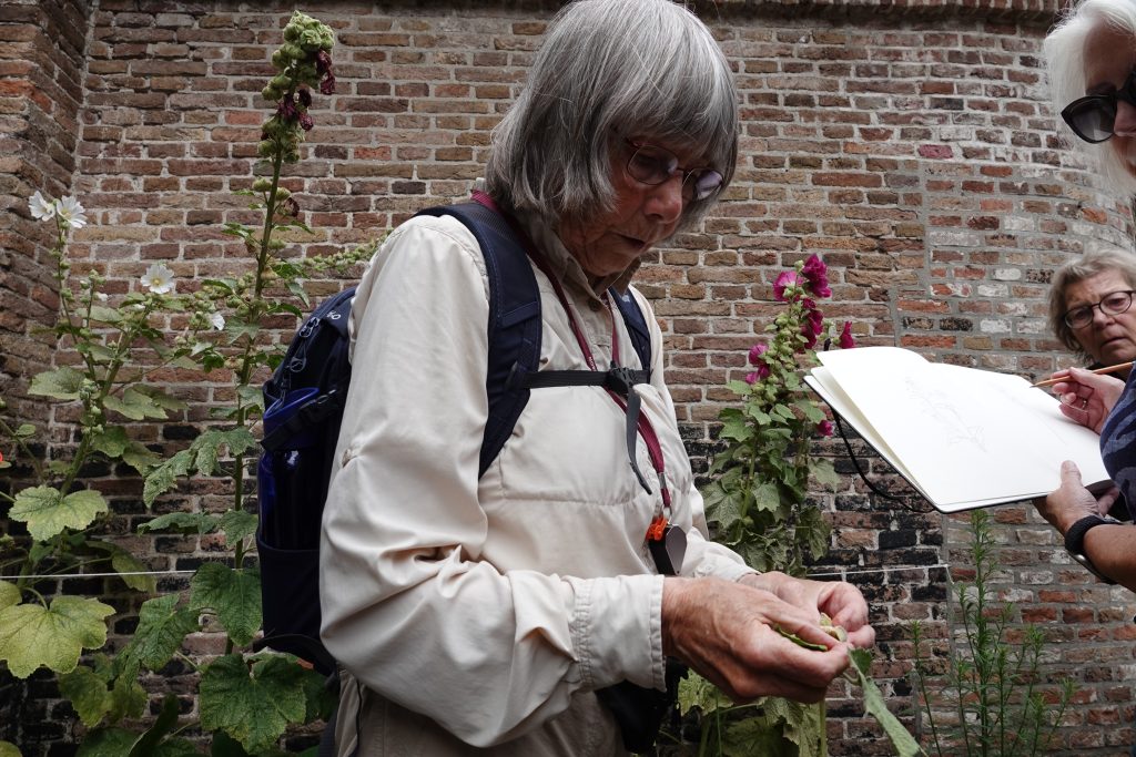 Vandaag was er MICRO – NATUUR XXL, een tekenworkshop met een gids en met Stadstekenaar Michiel Paalvast. De groep ging eerst op pad met Christien Labruijère, gids bij de KNNV Natuurvereniging Walcheren. De tocht ging niet ver, we wandelden door de Kuiperspoort in Middelburg. Daar vertelde Christien alles over de planten in het steegje en op de muren. Michiel vertelde hoe hij natuur op straat tekent.