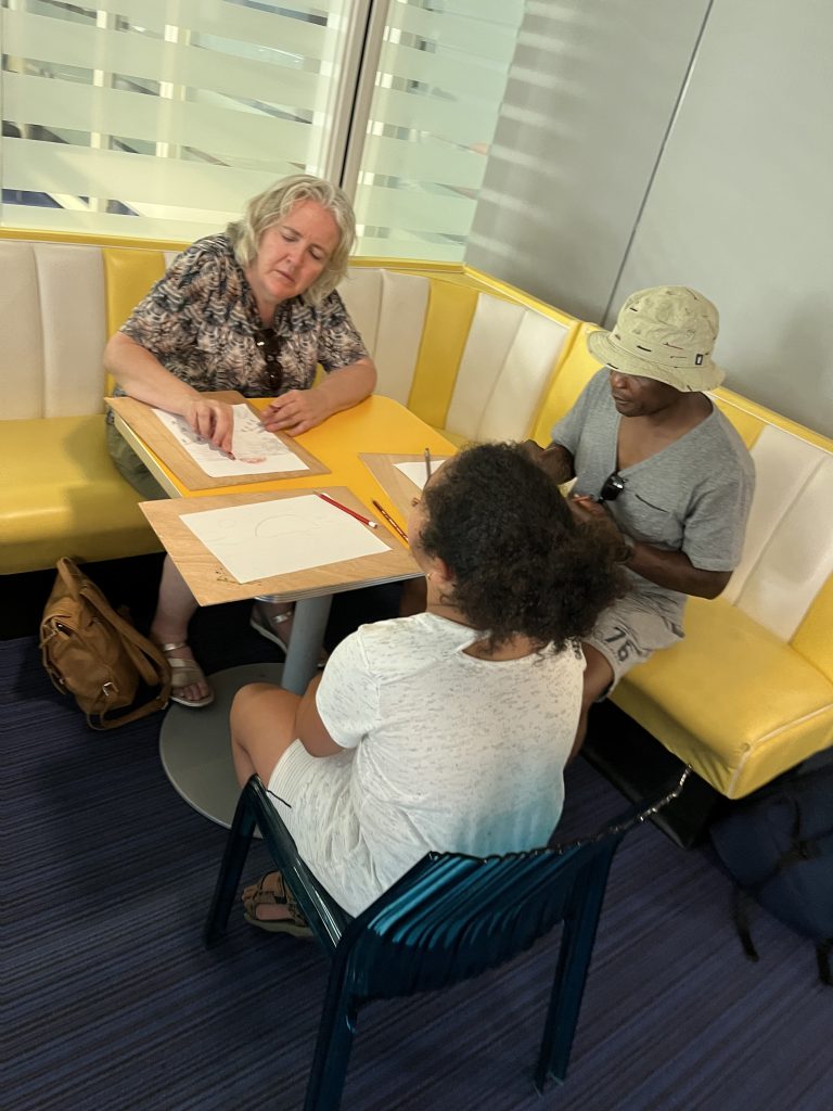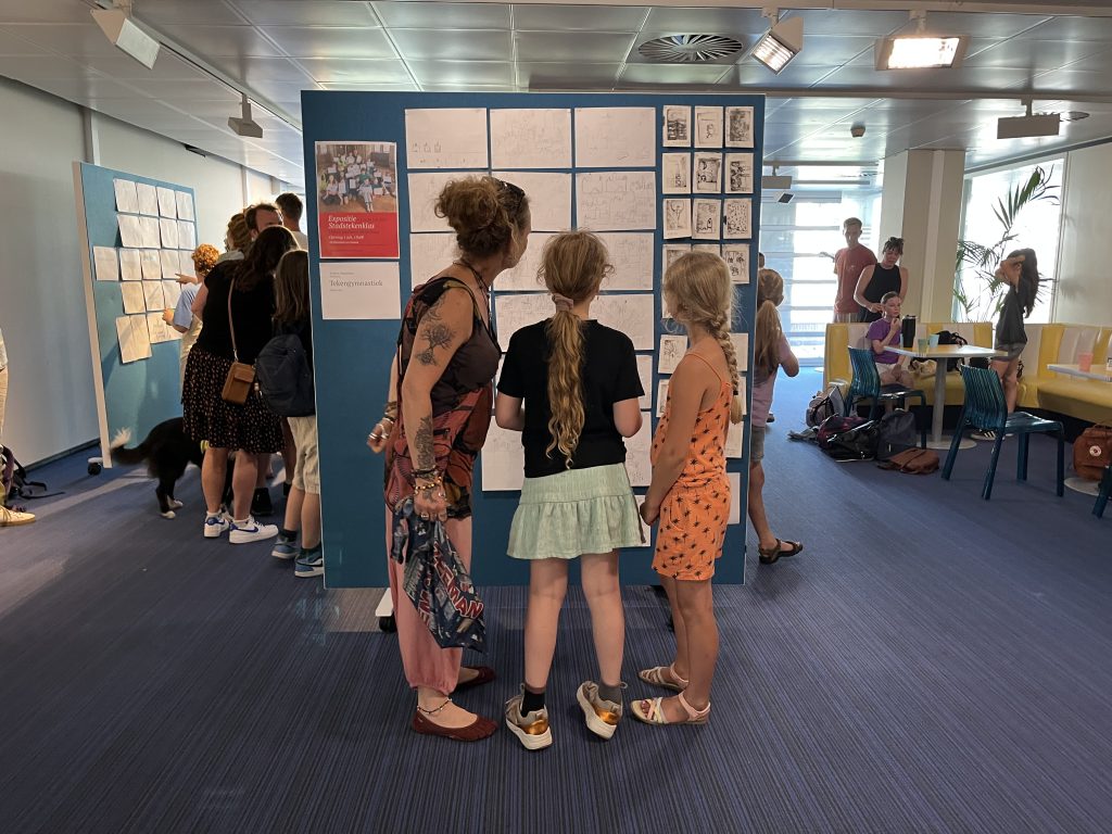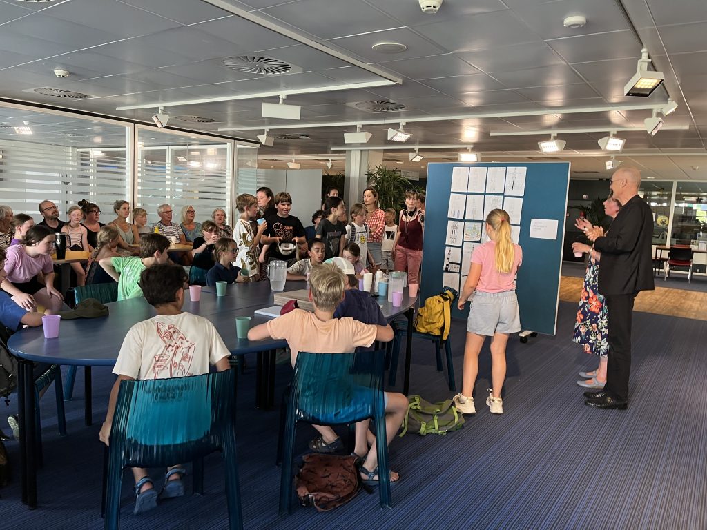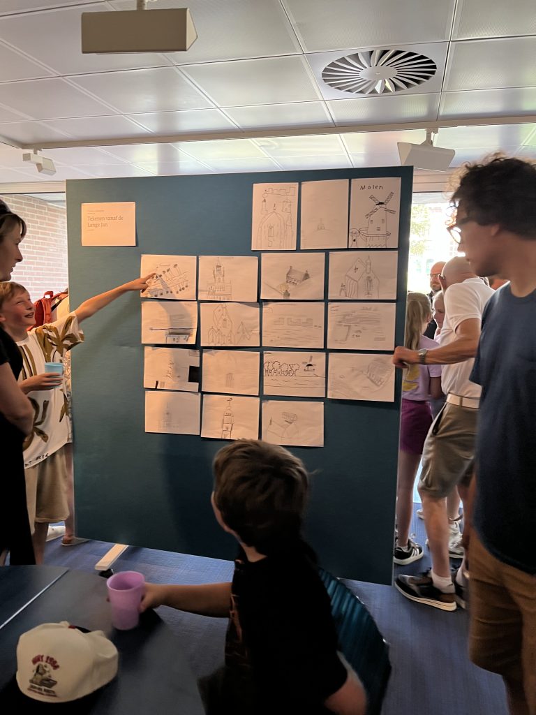 Tijdens de opening verzorgden de kinderen zelf een tekenworkshop voor alle volwassenen, voor de ouders en opa’s en oma’s die de opening bezochten.