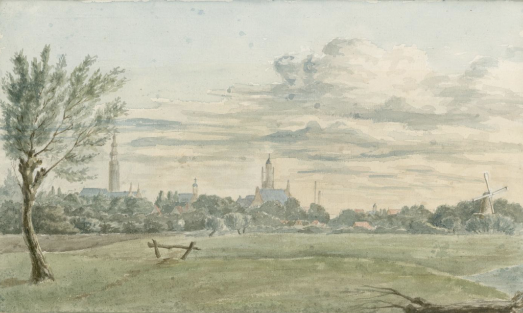 F.M. Beunke, Gezicht op Middelburg vanuit het noordwesten (tussen 1859 en 1874) – Zeeuws Archief, Collectie KZGW, ZI-II-2349-35