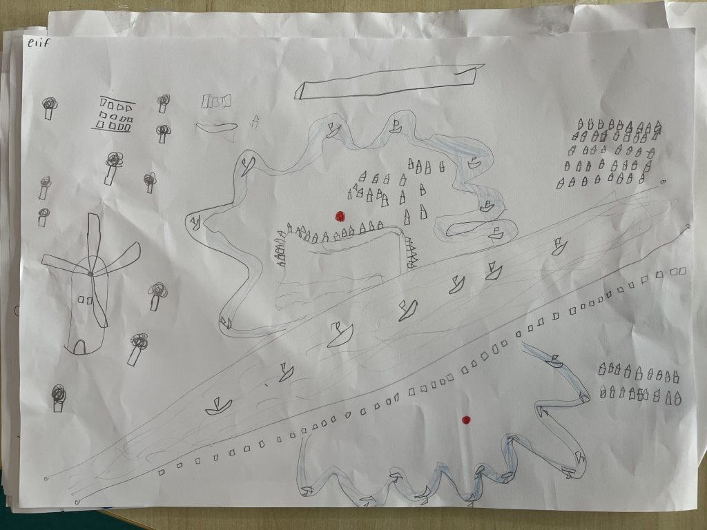 Een kaart van Dauwendaele getekend door de Stadstekenklas